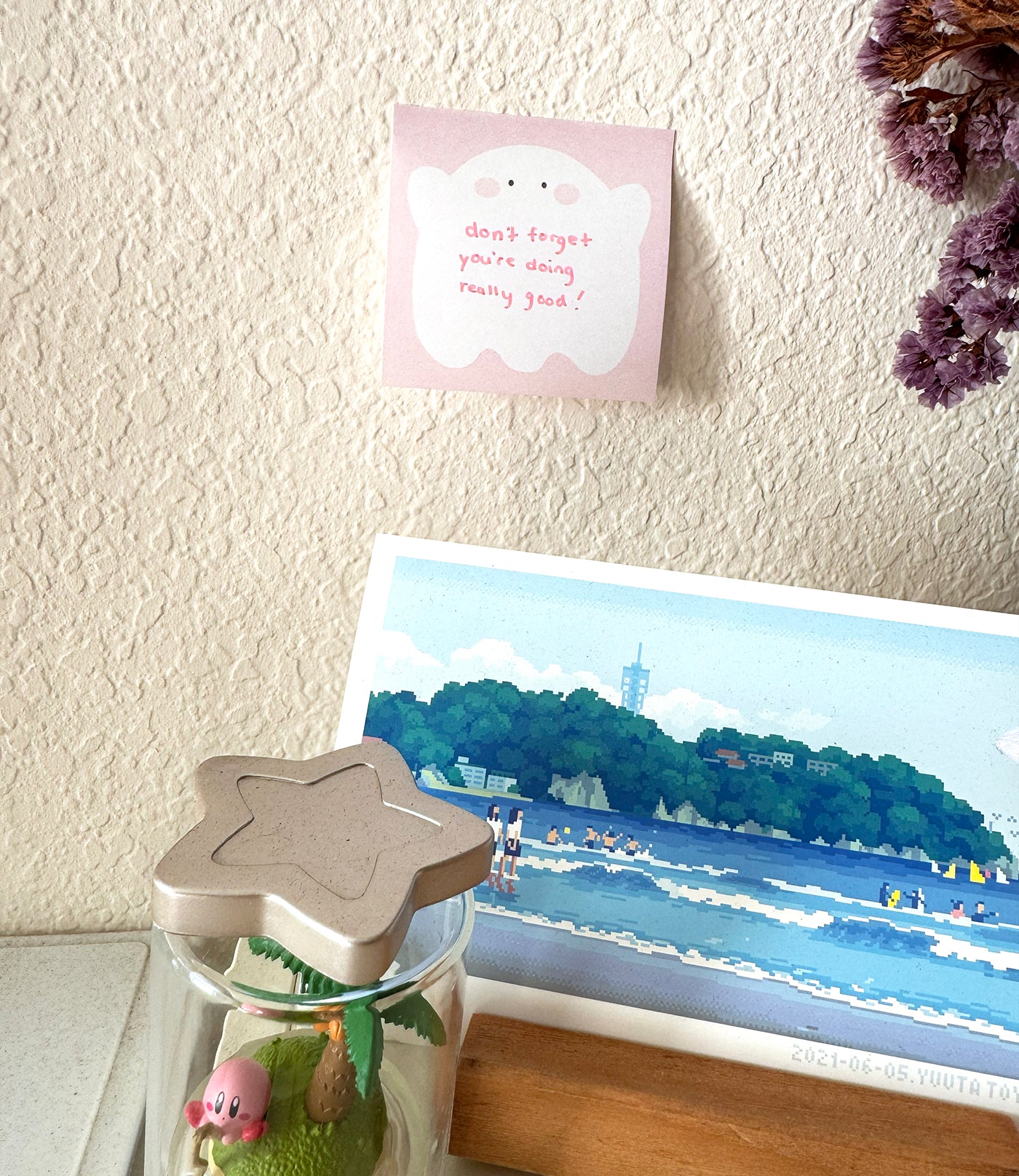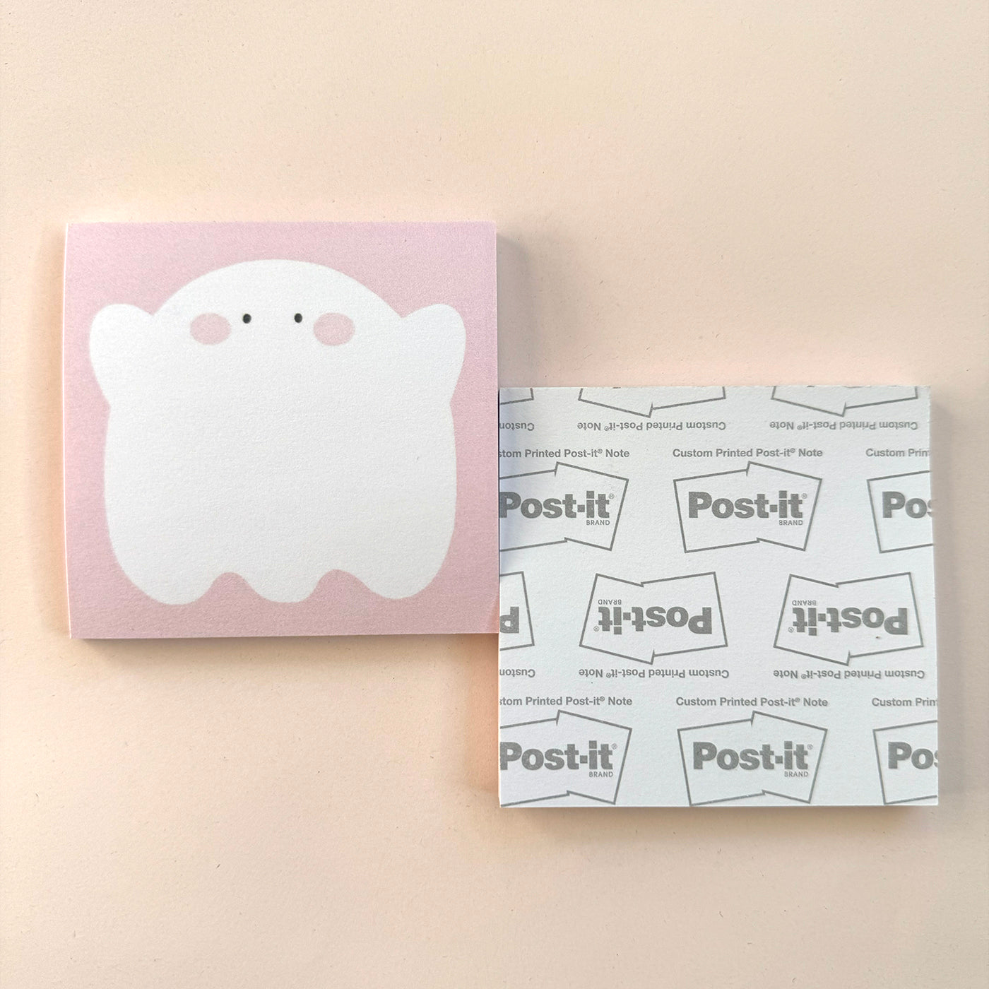 3" x 3" Ghost-it notes (I couldn't resist)! The sticky notes are custom Post-it note branded, so they have great stick power (notes stuck to my walls are still hanging on months later) and leave no residue! 50 sheets.