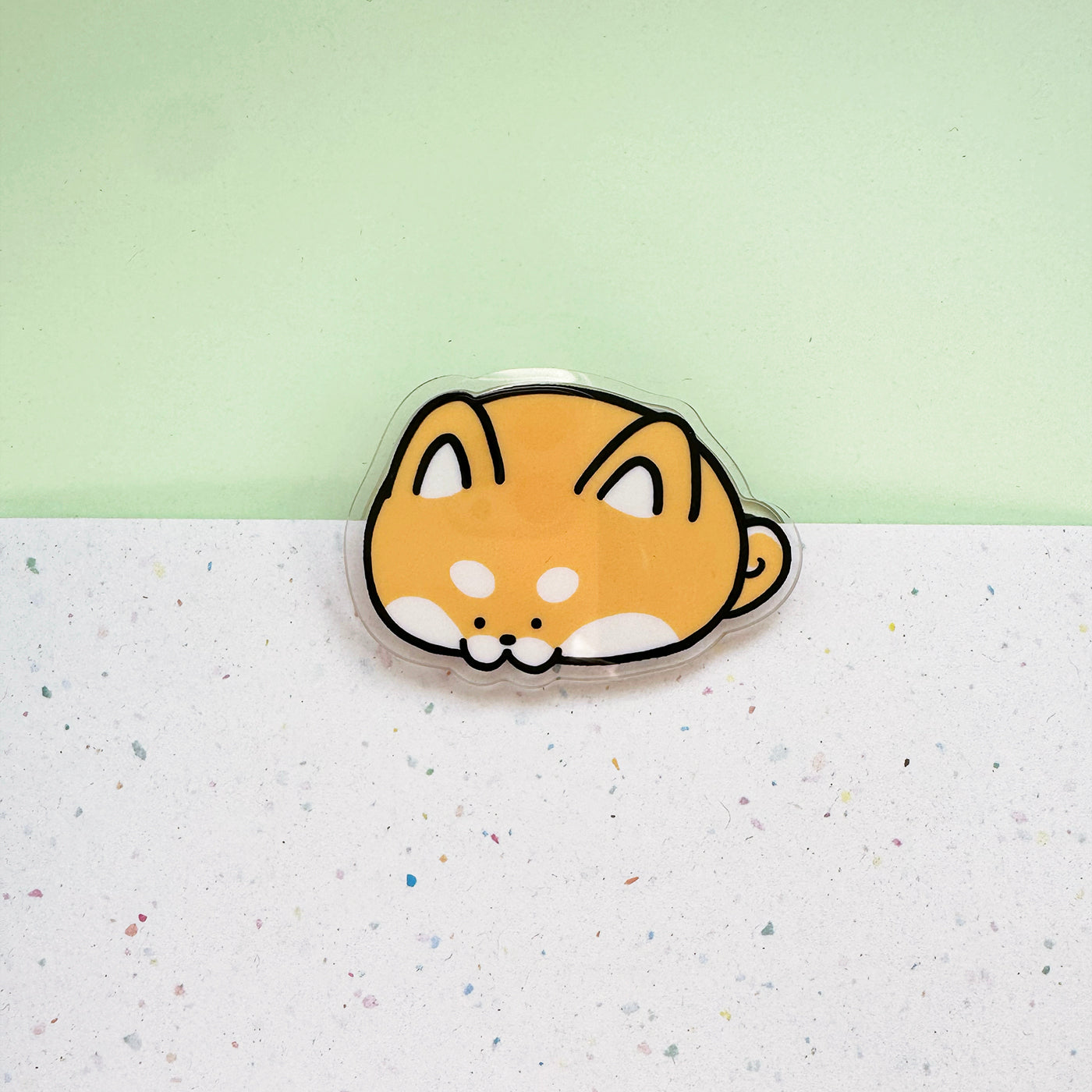 A double-sided acrylic bag clip of a shiba chomping your bags closed! Can be used to clip all sorts of snack bags, cereals, teas, and even papers. Can the pup have a little bite?